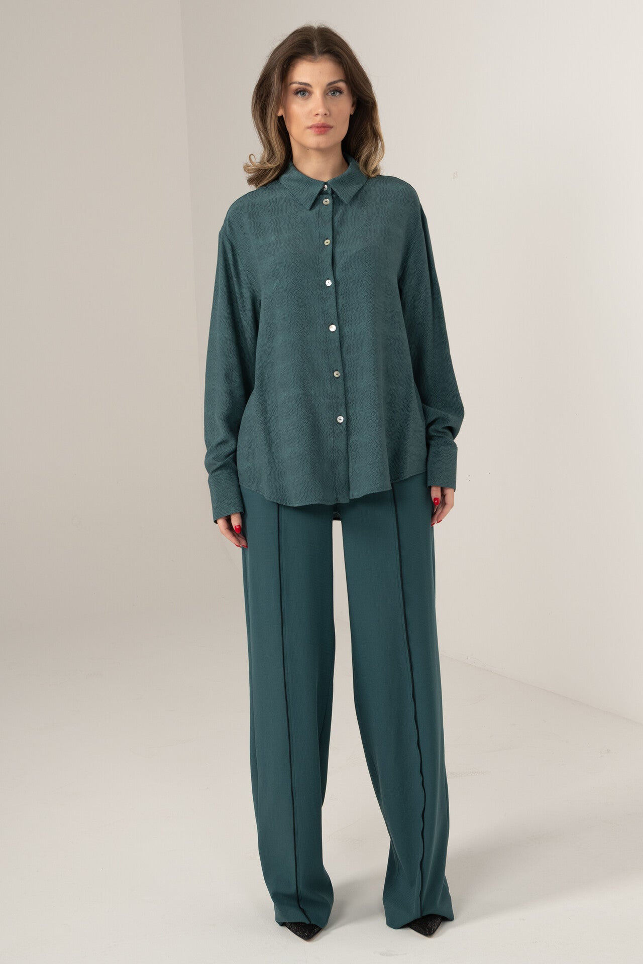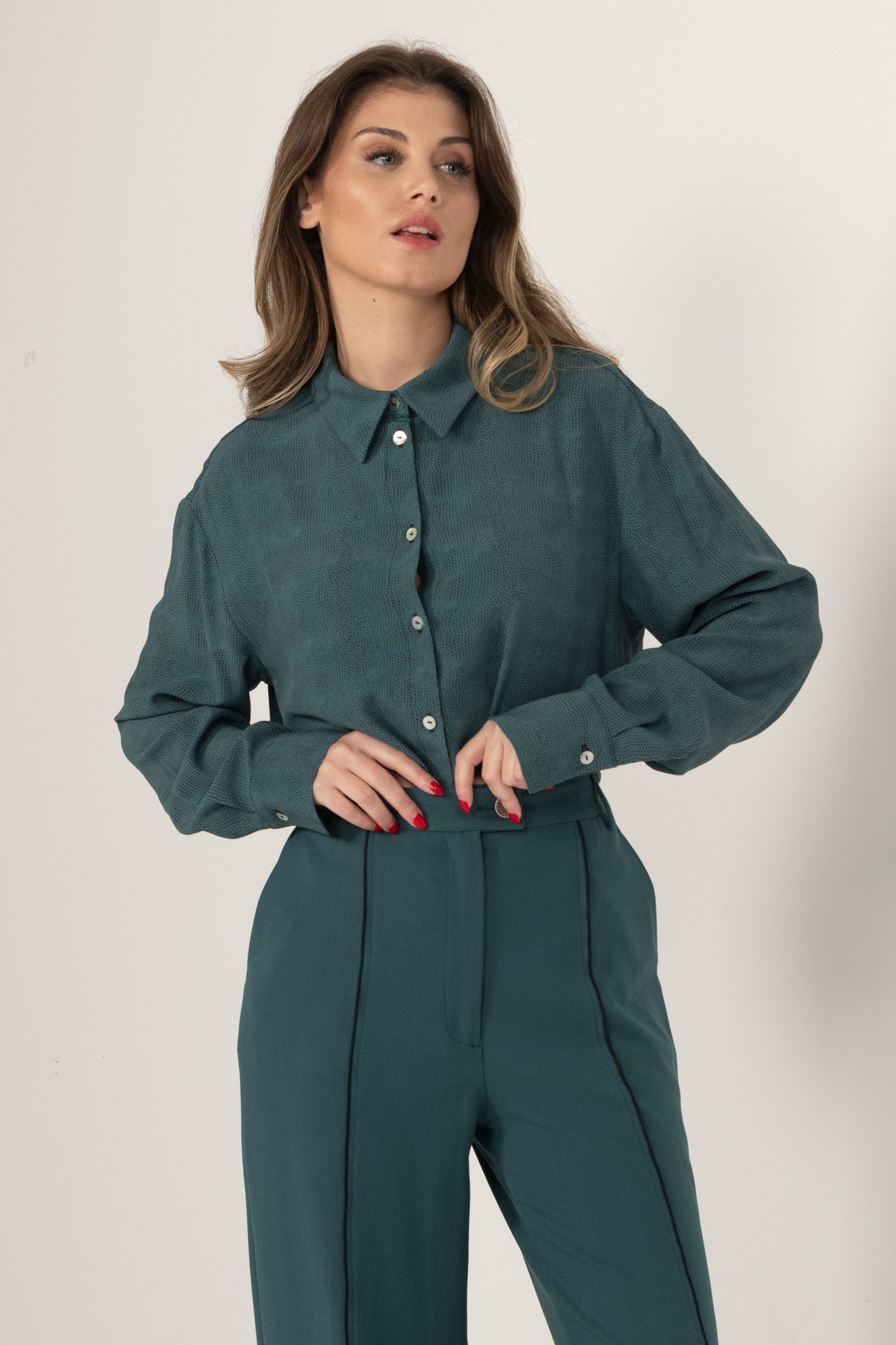 Blusa com carcela abotoada na frente, confecionada em tecido leve e fluido, que garante conforto e elegância. Apresenta mangas compridas com punhos abotoados, gola clássica e corte reto que valoriza a silhueta. Perfeita para compor looks casuais, adicionando um toque sofisticado e versátil ao visual.