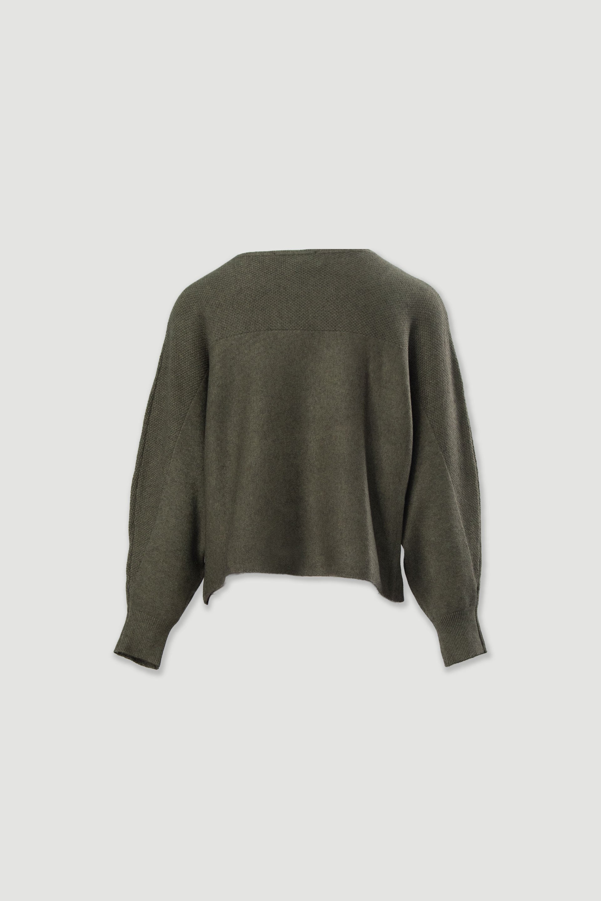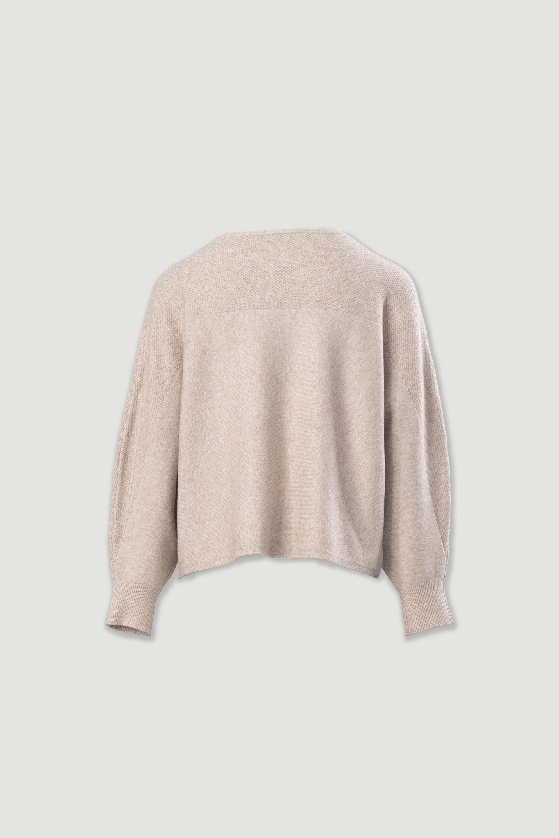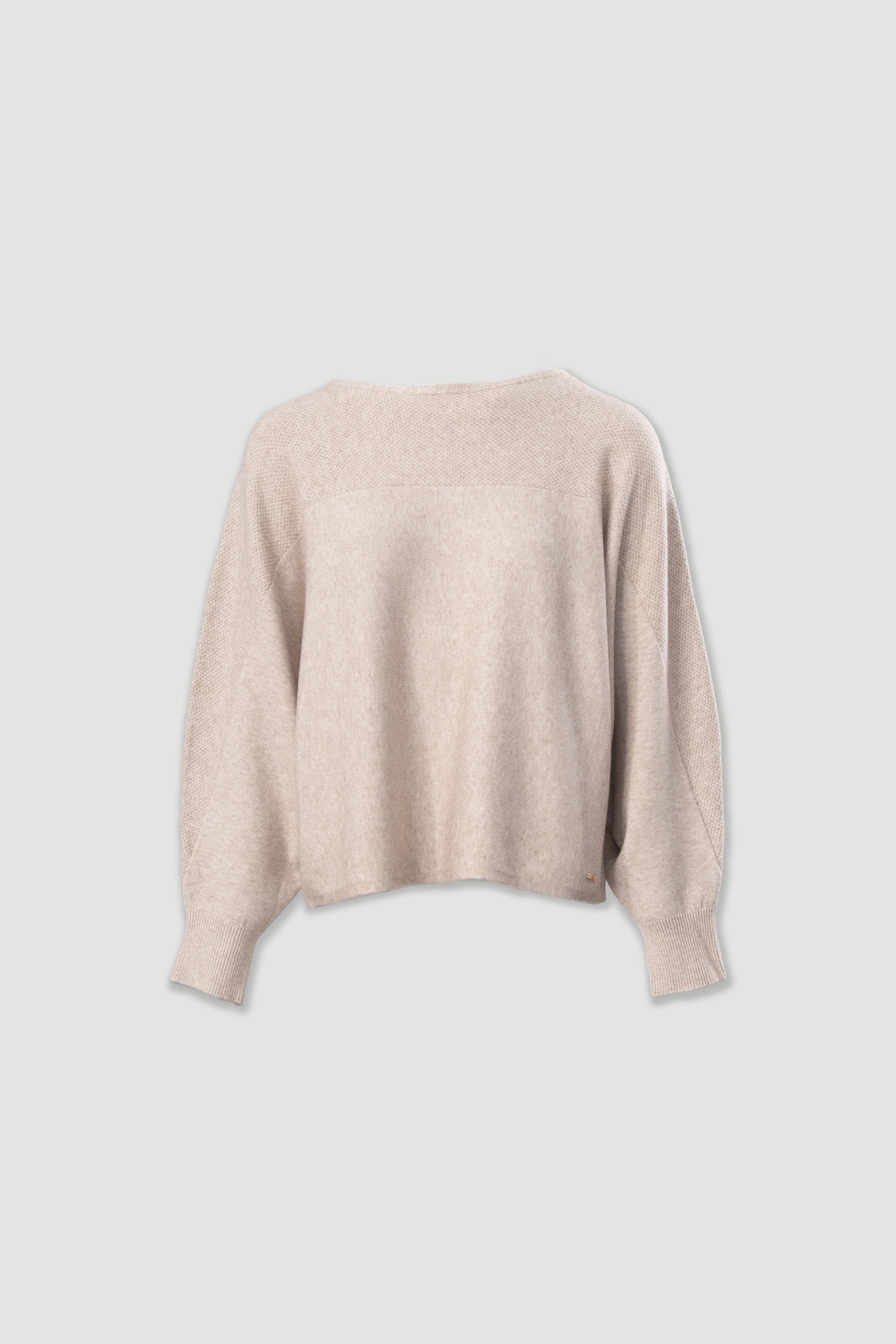 Camisola de malha com corte reto e mangas largas, que confere um toque moderno e descontraído ao visual. Confeccionada em malha macia, apresenta decote redondo e acabamento canelado nos punhos e na bainha. Uma peça confortável e versátil, ideal para looks casuais com um toque de sofisticação.