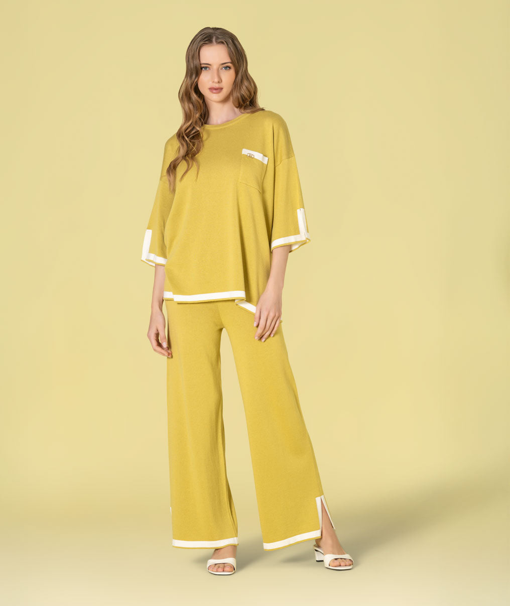 Pantalonas em malha da Ruga em pistacho Pantalonas em malha da Ruga em pistacho