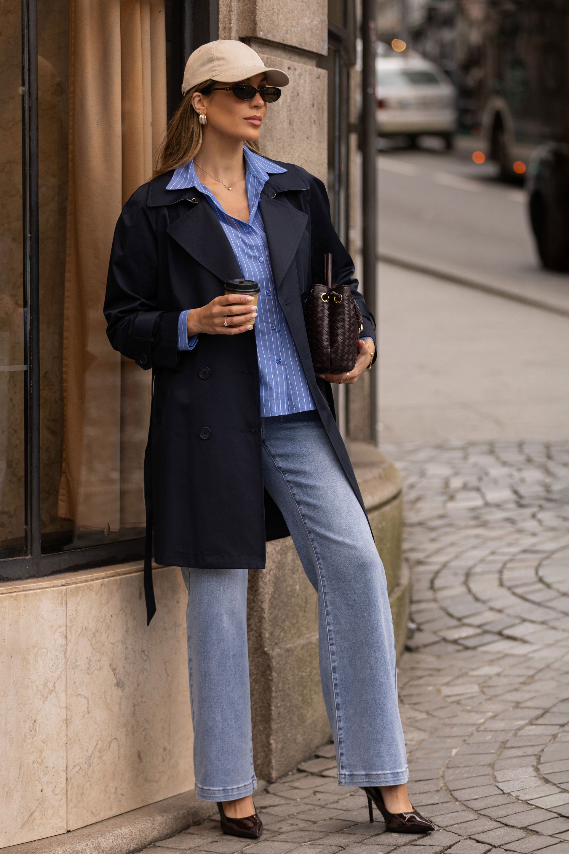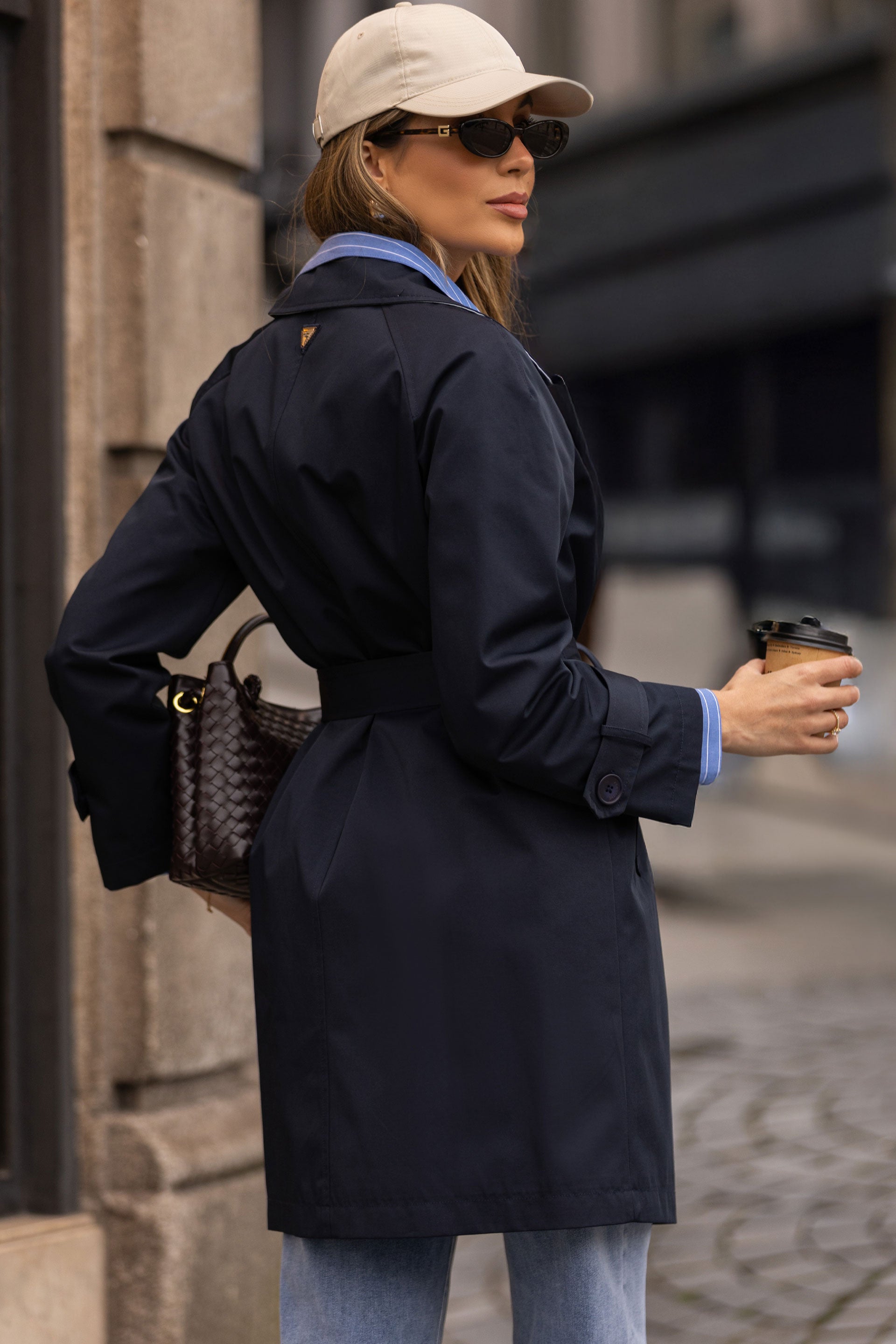 Gabardine feminina de corte clássico e elegante, confecionada em mistura de algodão para maior conforto e respirabilidade. Destaca-se pela gola em tom contrastante no exterior, um detalhe moderno que acrescenta personalidade ao design intemporal. Modelo de trespasse com botões frontais, complementado por cinto no mesmo tecido, ideal para ajustar à cintura e valorizar a silhueta. As mangas compridas com presilhas ajustáveis nos punhos permitem um encaixe personalizado, enquanto os bolsos laterais funcionais oferecem praticidade no dia a dia. Uma gabardine feminina versátil, perfeita para compor looks urbanos sofisticados ou coordenados mais descontraídos na meia-estação, tornando-se uma peça essencial no guarda-roupa feminino.