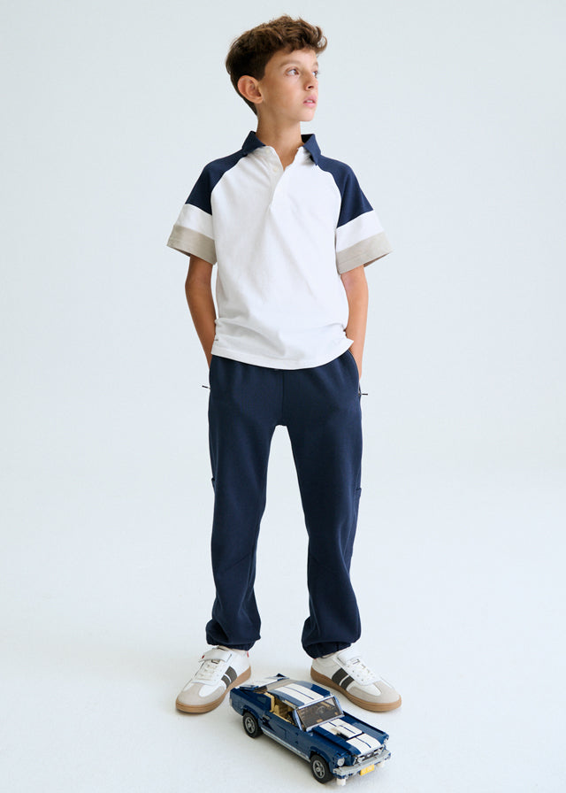 Plain Mayoral polo shirt for teenage boys, suitable for ages 10 to 18, with discreet details that elevate the look. A versatile piece, ideal for both everyday wear and more formal ceremonies or events.