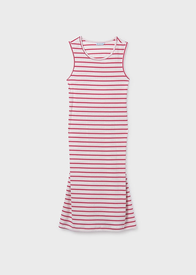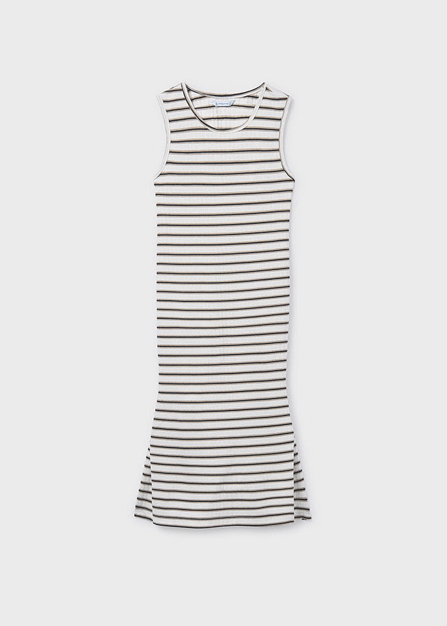 Vestido midi às riscas Mayoral para menina teenager, indicado dos 10 aos 18 anos, com design moderno e intemporal.