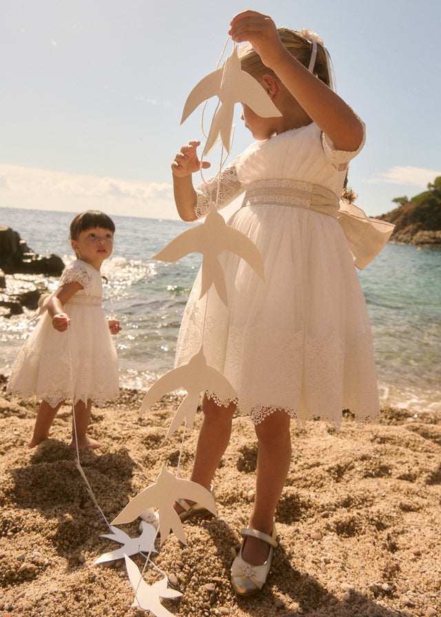 Vestido de tul bordado para  meninas de cerimónia da linha Abel&Lula da Mayoral indicado para comunhão, batizado ou eventos especiais Vestido de tul bordado para meninas de cerimónia da linha Abel&Lula da Mayoral indicado para comunhão, batizado ou eventos especiais