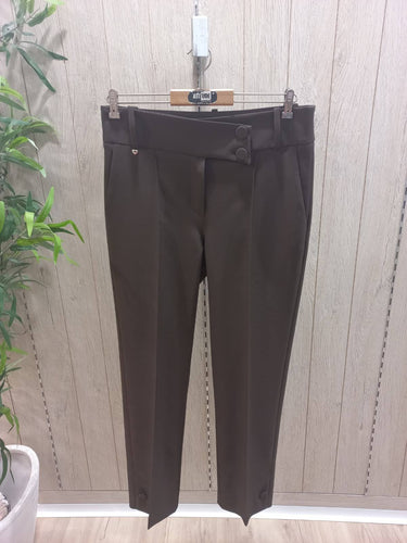 As calças I26CAL02ASM10 de corte a direito combinam a elegância intemporal com detalhes de design que fazem a diferença. Produzidas em Portugal em 87% poliéster e 13% spandex, oferecem um caimento impecável e conforto durante todo o dia. A cintura alta com cós assimétrico, enriquecida por dois botões forrados no mesmo tom, cria um ponto de interesse sofisticado, enquanto o fecho frontal assegura um acabamento limpo. Os bolsos laterais acrescentam funcionalidade, e o detalhe do botão forrado na zona do tornozelo dá um toque subtil de originalidade. O azul-marinho é um clássico versátil: suficientemente escuro para transmitir sobriedade, mas com um toque de cor que o torna menos previsível do que o preto. Combina harmoniosamente com brancos, cremes, cinzas e tons pastel, e pode ganhar ousadia quando conjugado com cores vibrantes como vermelho, caramelo ou verde. Perfeitas para ambientes profissionais, eventos ou momentos de lazer com sofisticação, estas calças são uma peça-chave para um guarda-roupa elegante e funcional.
