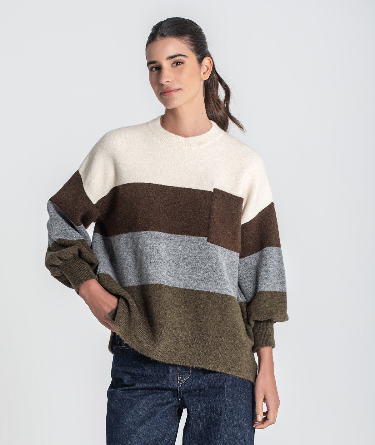 Camisola riscas com bolso