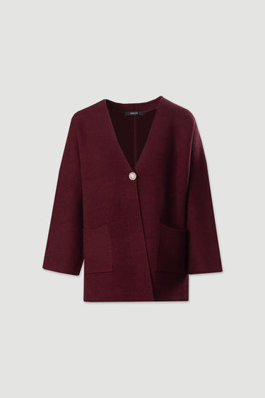 Casaco de malha em tecido texturado com fecho frontal em botão personalizado. De corte reto e comprimento médio, apresenta bolsos frontais aplicados e manga 3/4, conferindo um toque moderno e descontraído. Uma peça versátil e elegante, perfeita para coordenar com looks de meia-estação.