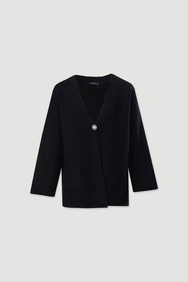 Casaco de malha em tecido texturado com fecho frontal em botão personalizado. De corte reto e comprimento médio, apresenta bolsos frontais aplicados e manga 3/4, conferindo um toque moderno e descontraído. Uma peça versátil e elegante, perfeita para coordenar com looks de meia-estação.