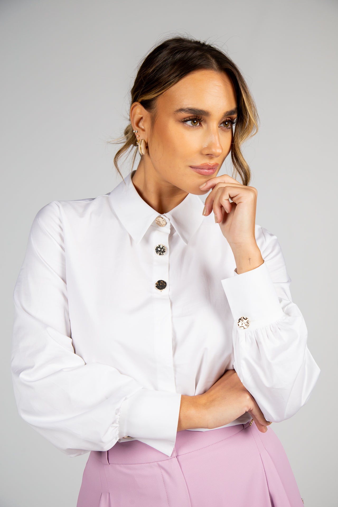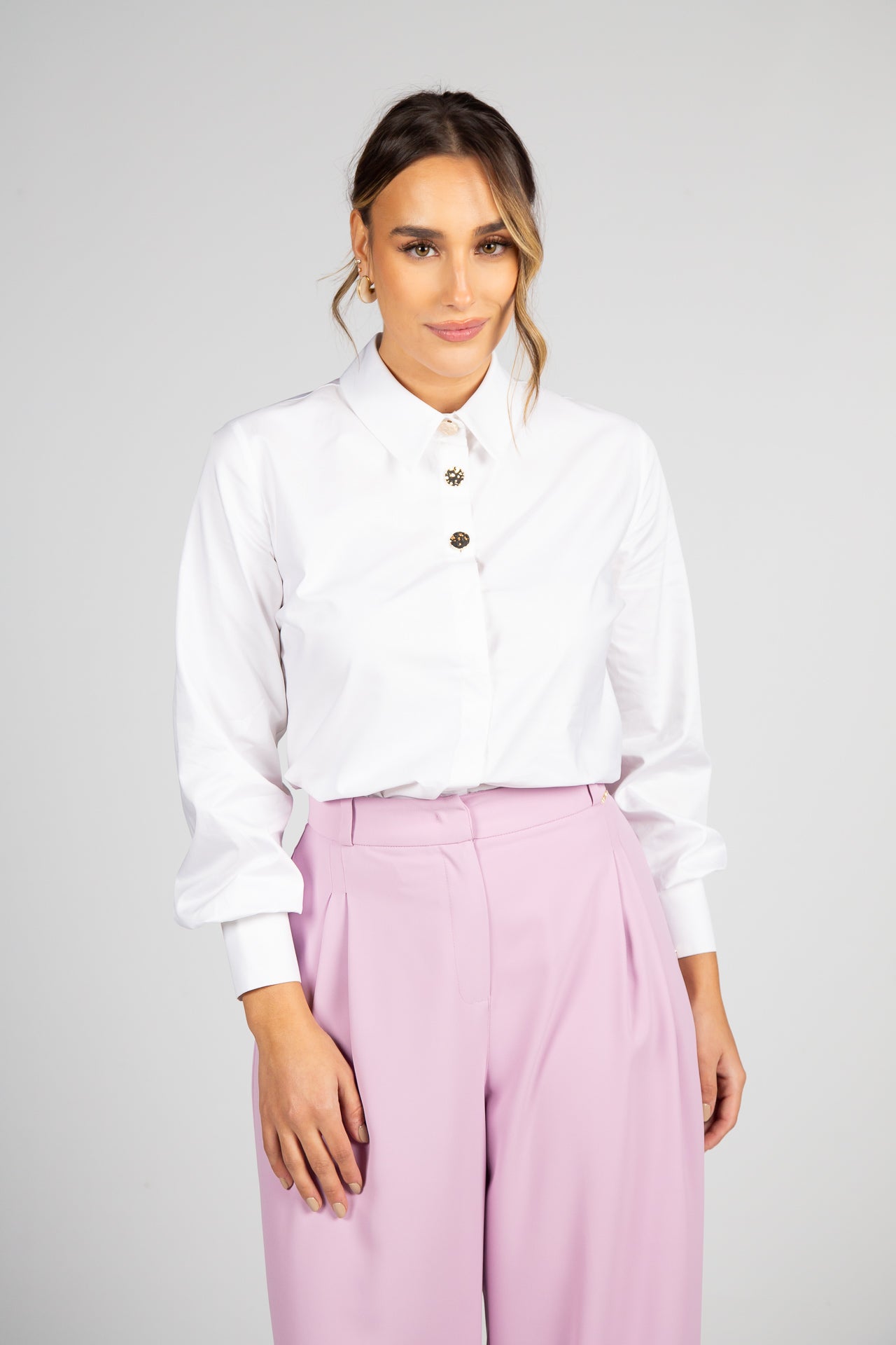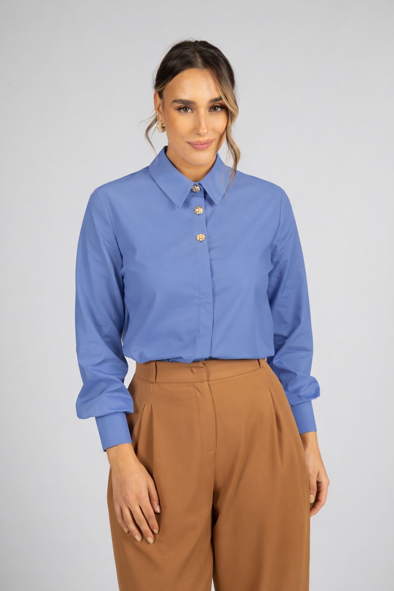 As mangas compridas com punhos definidos reforçam o acabamento cuidado e a estética elegante da peça. Fácil de conjugar, adapta-se a looks profissionais com calças de alfaiataria ou saias, bem como a coordenados mais descontraídos com jeans. Ideal também para usar com blazers ou casacos leves, compondo visuais modernos e sofisticados.