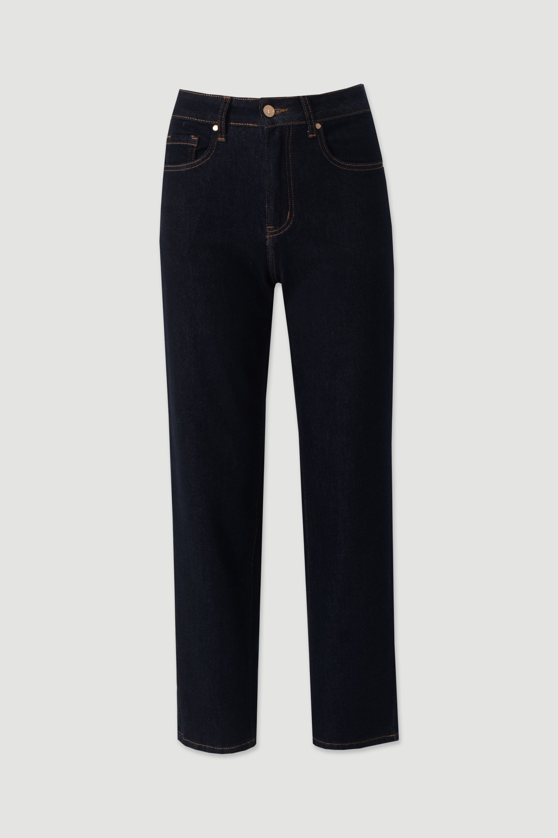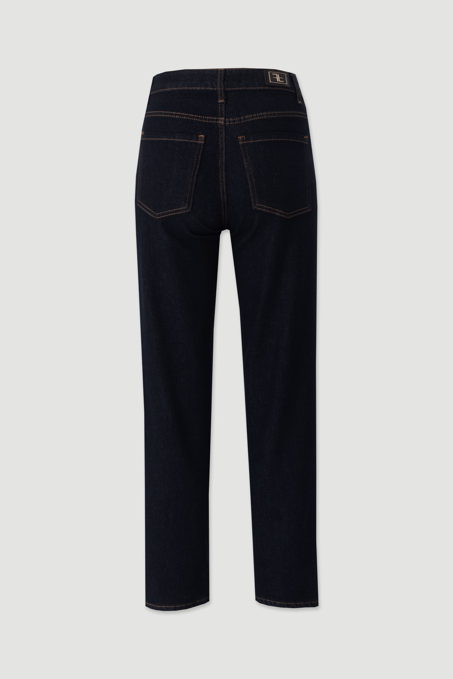 Apresentam design clássico de cinco bolsos, costuras contrastantes que valorizam o corte e fecho frontal com botão e fecho de correr, garantindo praticidade e um acabamento moderno. O corte direito torna estes jeans uma peça essencial no guarda-roupa feminino, fácil de combinar com diferentes estilos.