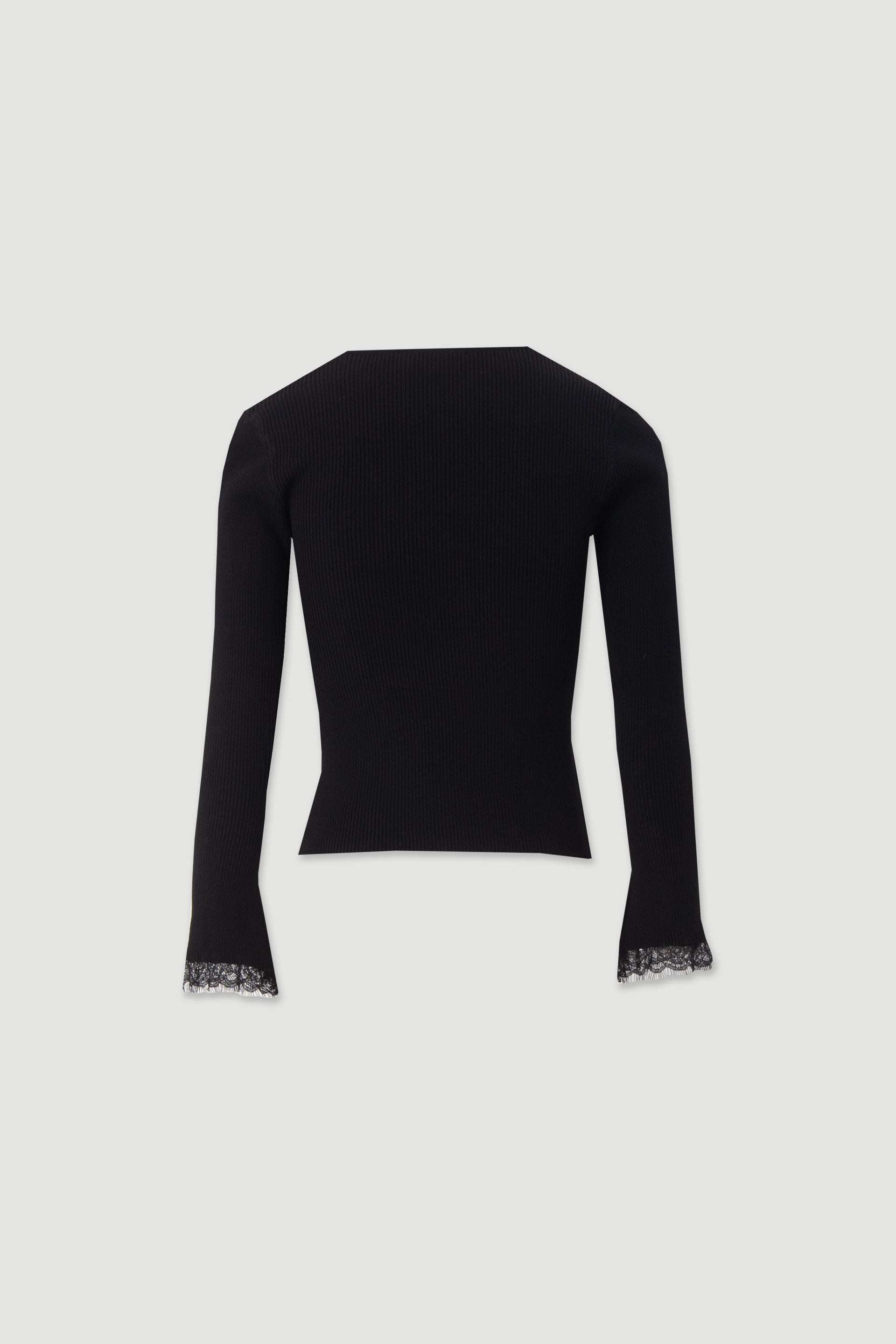 De manga comprida, apresenta também acabamento em renda nos punhos, reforçando a feminilidade e o cuidado nos detalhes. O corte ajustado adapta-se harmoniosamente à silhueta, criando uma linha elegante sem comprometer o conforto.
