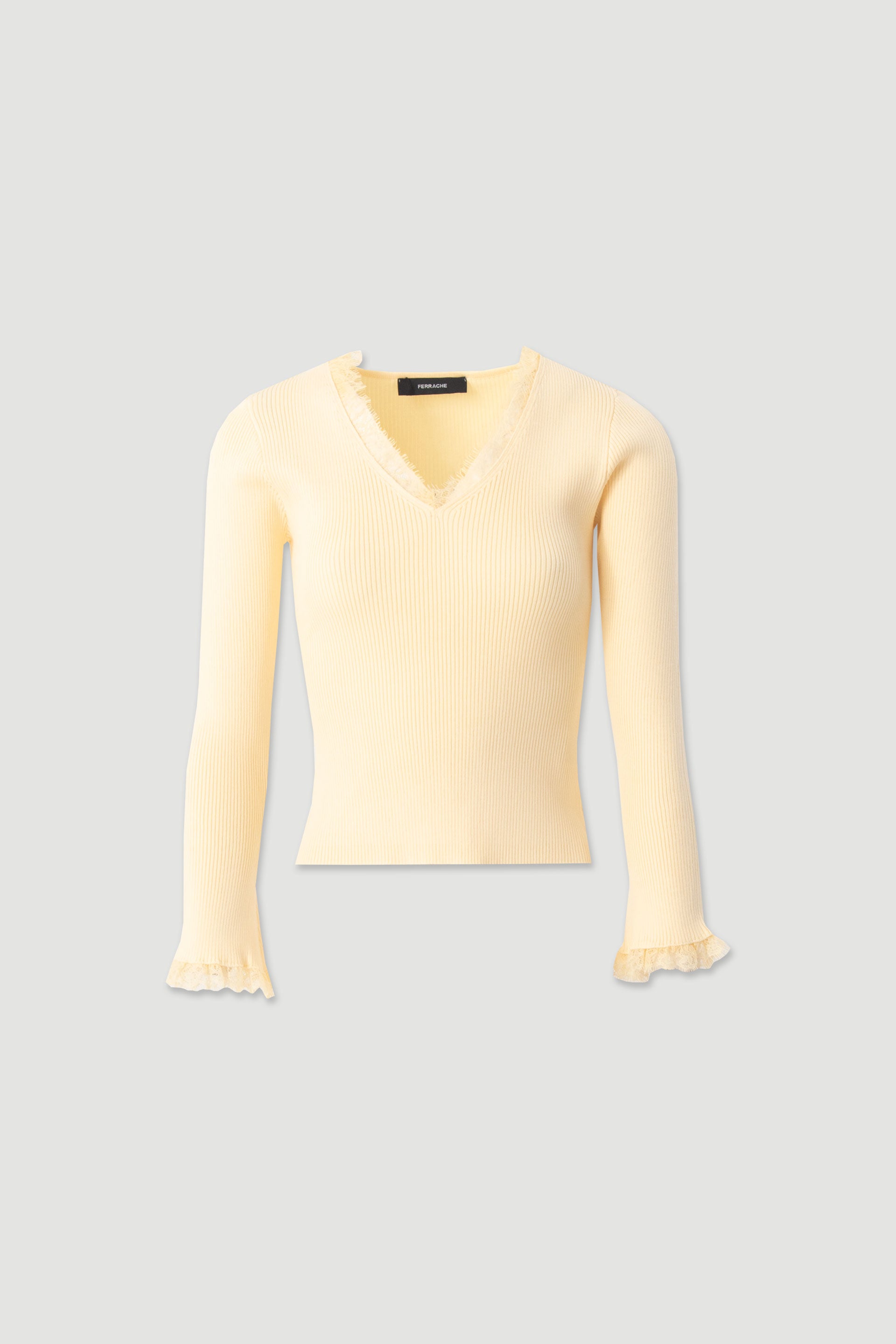 Versátil e fácil de conjugar, esta camisola em malha canelada é ideal para looks do dia a dia com jeans ou calças clássicas, podendo igualmente integrar coordenados mais elegantes quando combinada com alfaiataria ou saias sofisticadas.