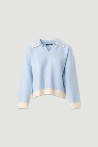 Polo de malha suave, de corte descontraído e elegante. Apresenta gola polo com decote em V e detalhes em contraste, que acrescentam um toque moderno à peça. Manga comprida com ombro descaído e acabamentos canelados na baínha e nos punhos. Ideal para looks contemporâneos e femininos, perfeitos para o dia a dia.