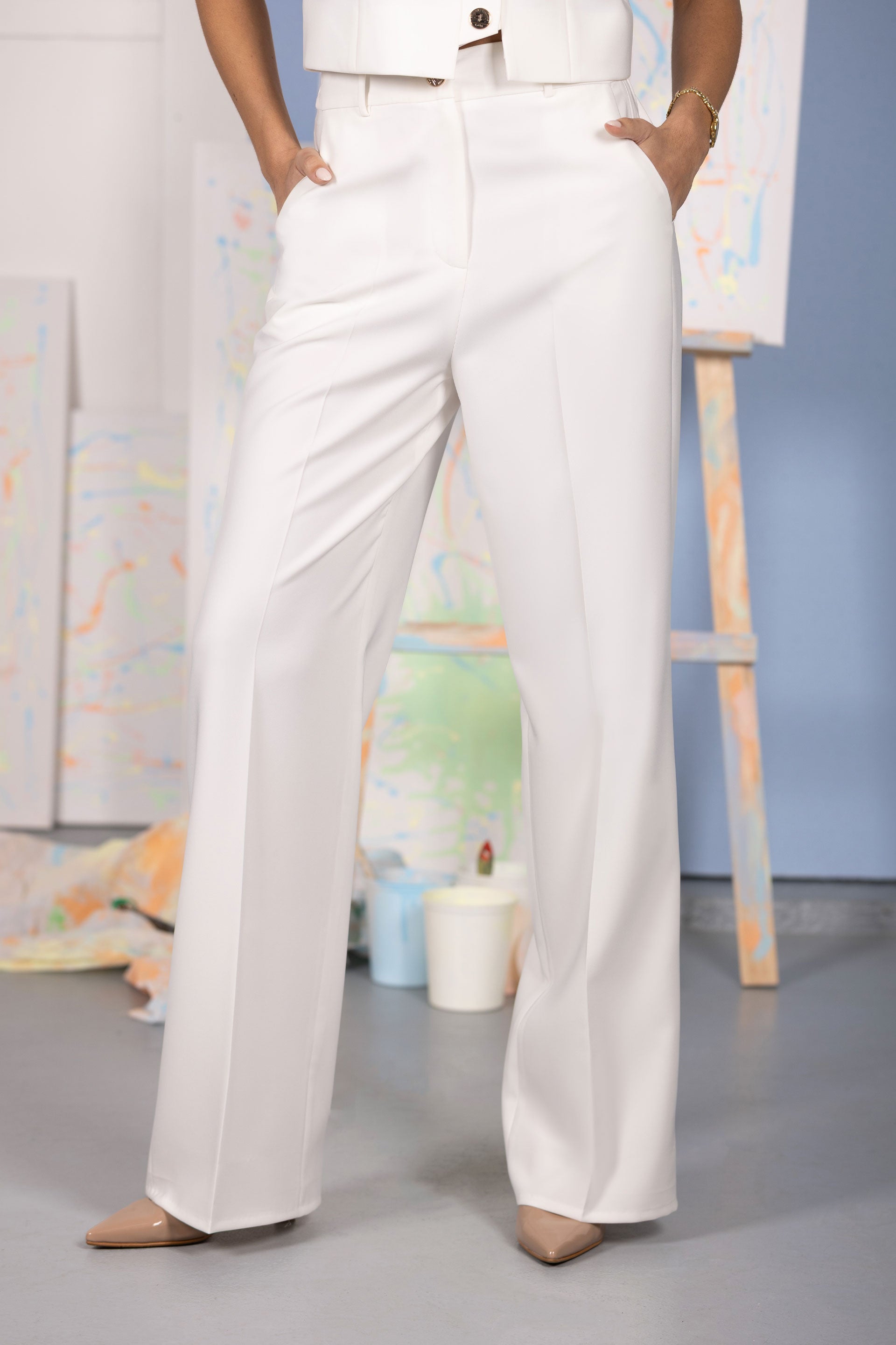 De linhas limpas e inspiração tailoring, esta calça Ferrache para mulher é perfeita para coordenados formais, looks profissionais ou combinações modernas com blazers, blusas ou tops elegantes.