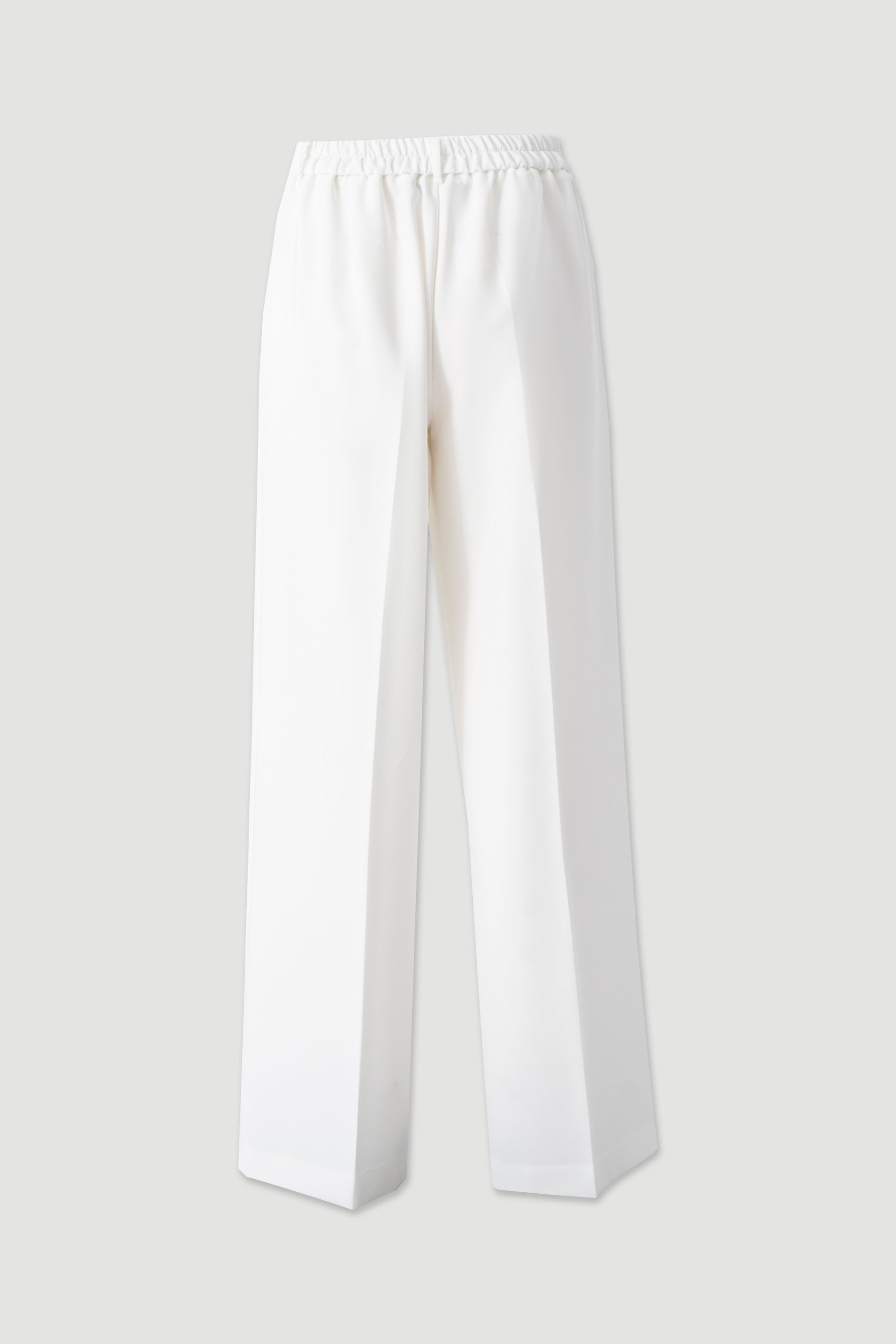 Apresenta cintura estruturada com presilhas para cinto e fecho frontal discreto, proporcionando um visual minimalista e elegante. Na parte posterior, o cós elástico garante maior conforto e melhor adaptação ao corpo.