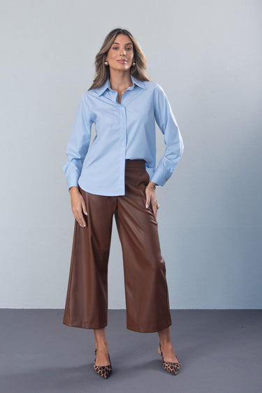 Camisa em algodão macio, com um corte clássico e elegante. O modelo apresenta gola estruturada, carcela com botões ocultos e punhos largos com fecho ajustável, garantindo um visual limpo e sofisticado. Uma peça essencial e versátil, perfeita tanto para looks profissionais como para combinações mais casuais e descontraídas.