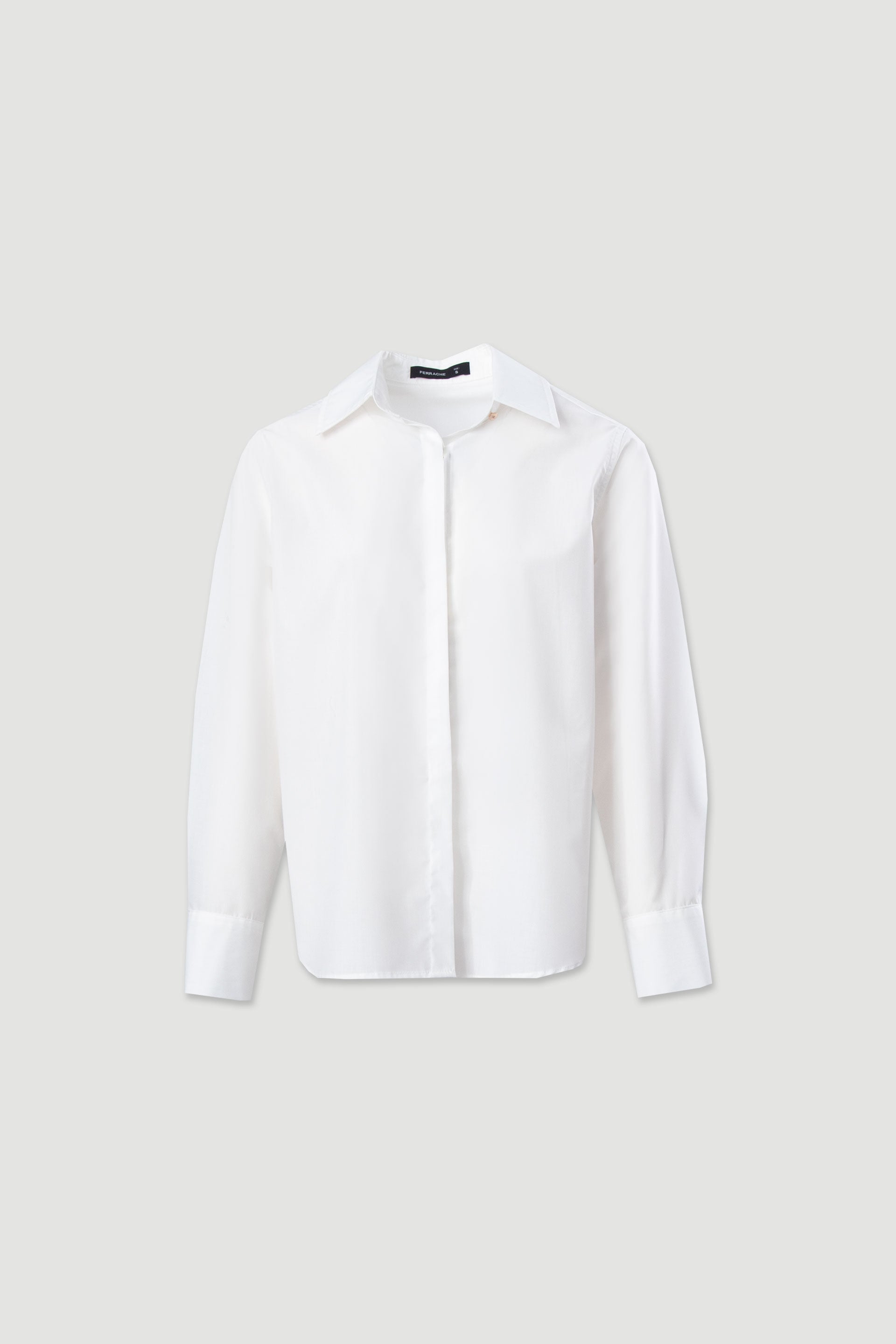 Camisa em algodão macio, com um corte clássico e elegante. O modelo apresenta gola estruturada, carcela com botões ocultos e punhos largos com fecho ajustável, garantindo um visual limpo e sofisticado. Uma peça essencial e versátil, perfeita tanto para looks profissionais como para combinações mais casuais e descontraídas.