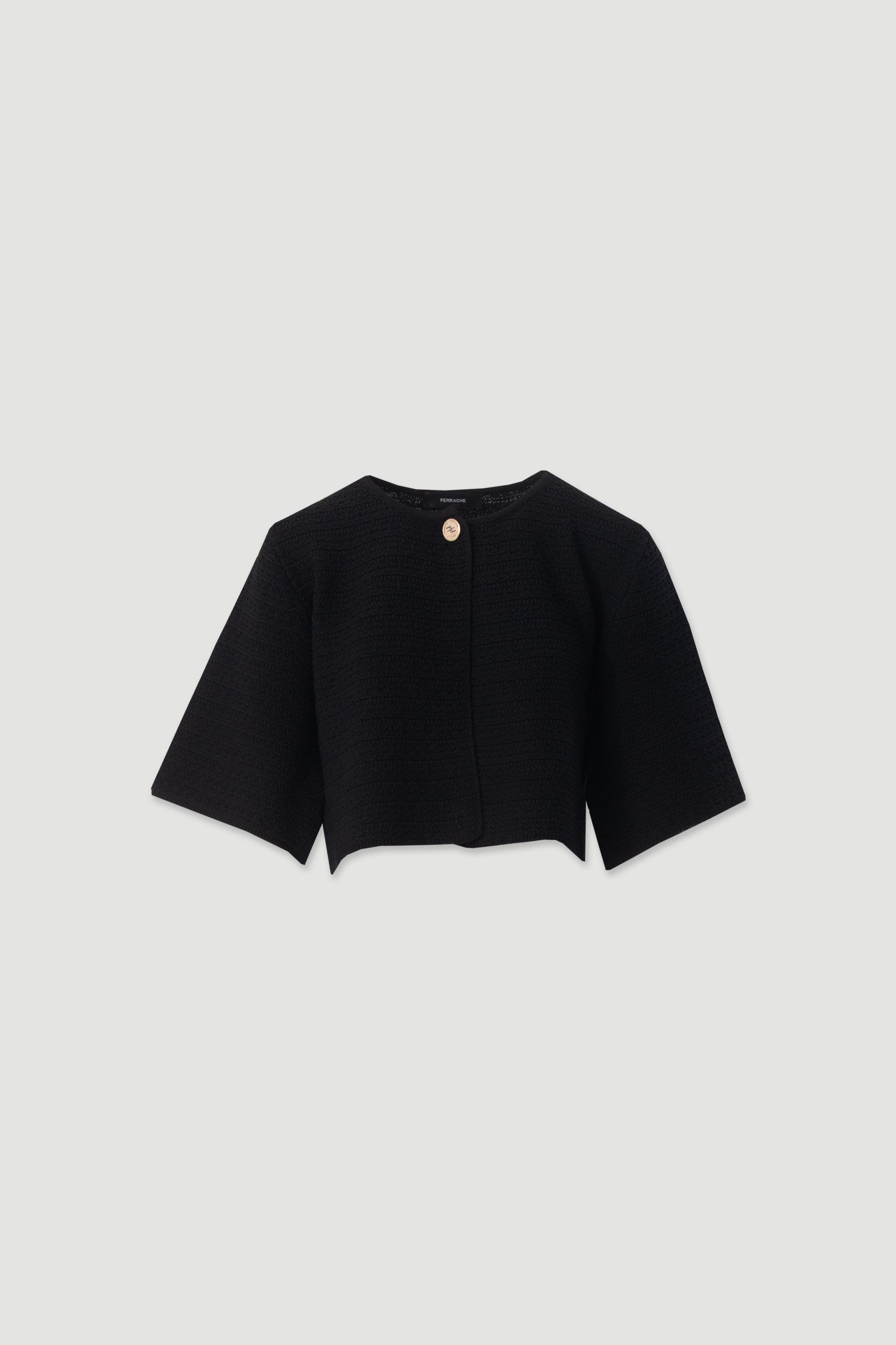 Casaco feminino curto Ferrache com textura trabalhada, ideal para acrescentar sofisticação e elegância a qualquer look Casaco feminino curto Ferrache com textura trabalhada, ideal para acrescentar sofisticação e elegância a qualquer look