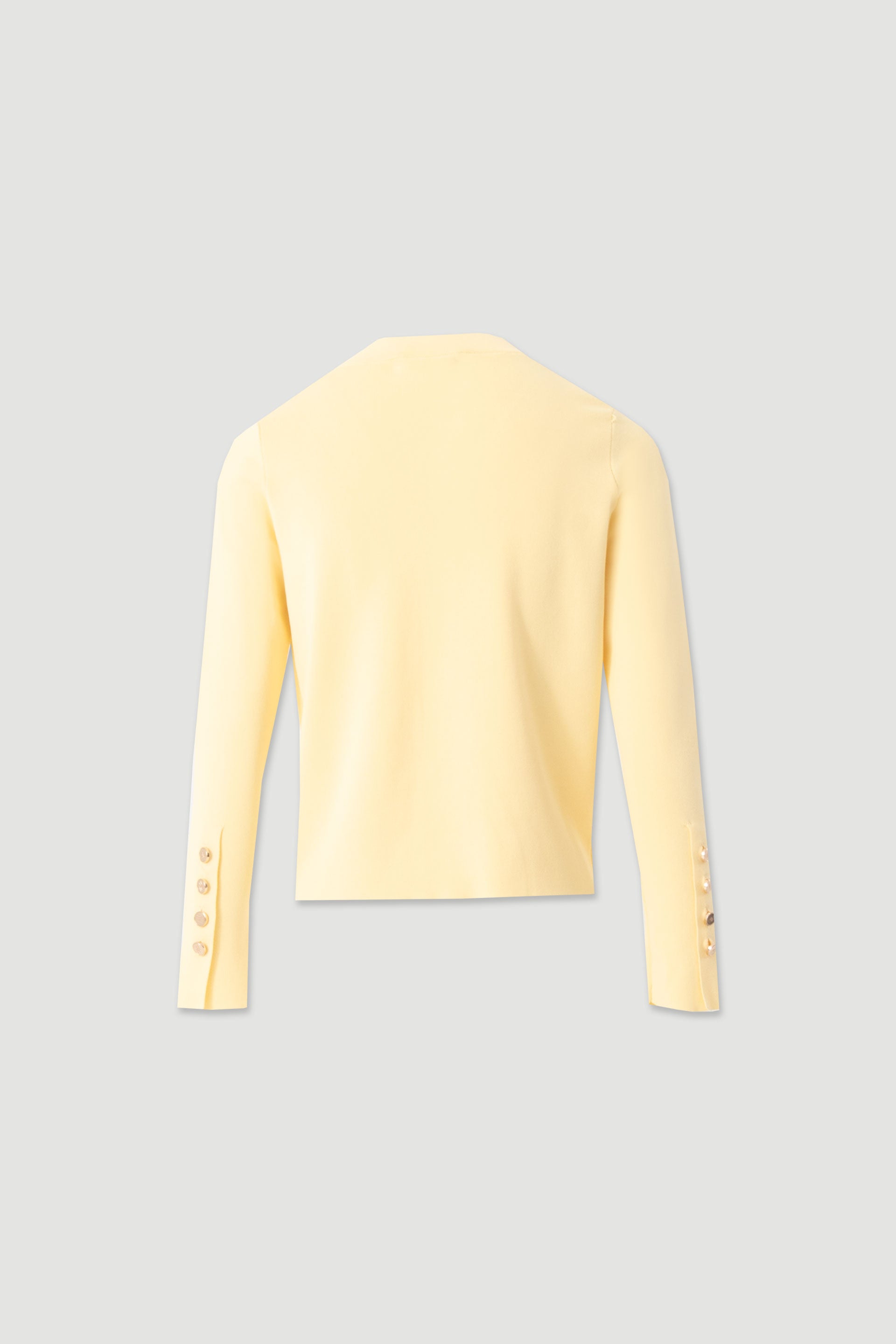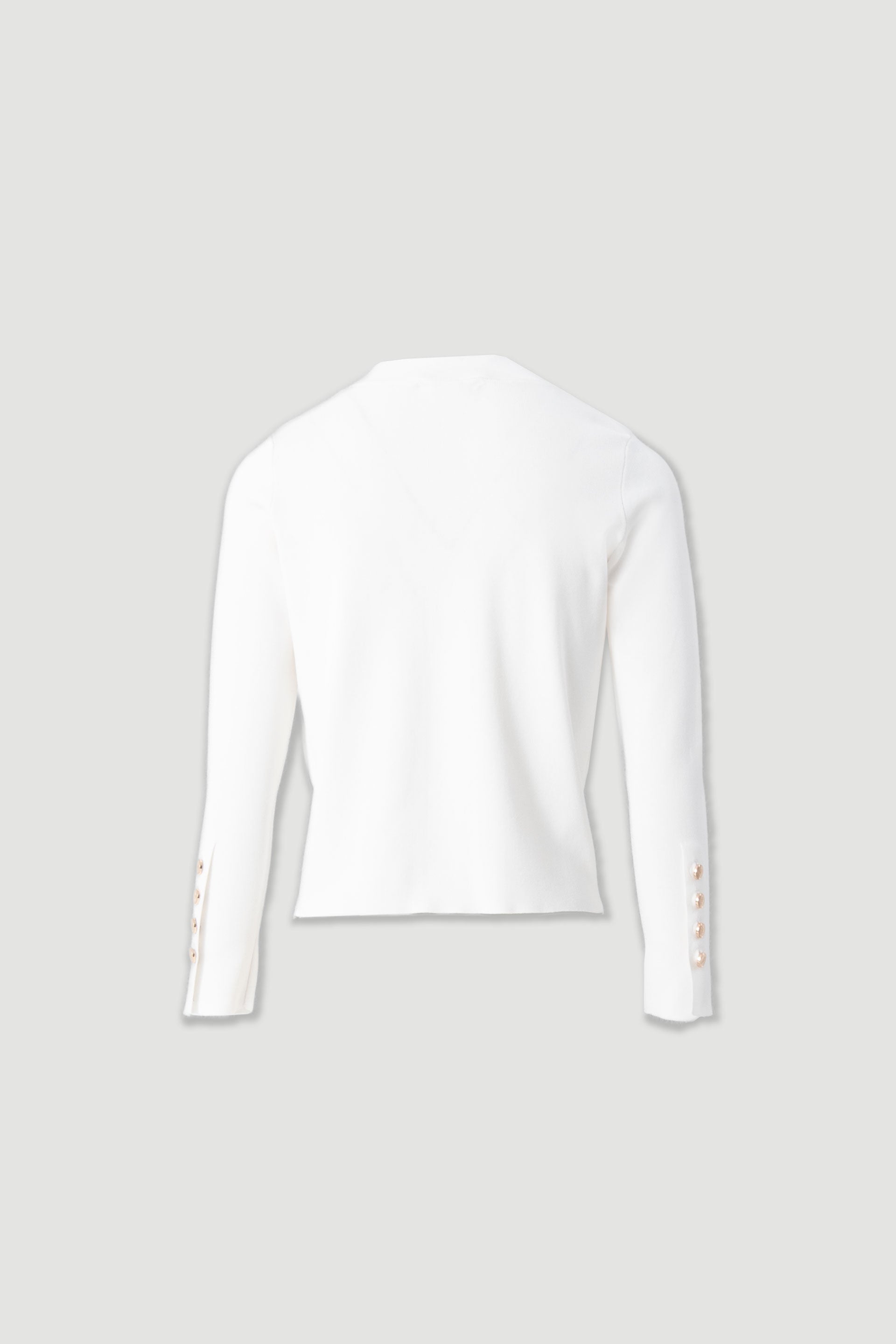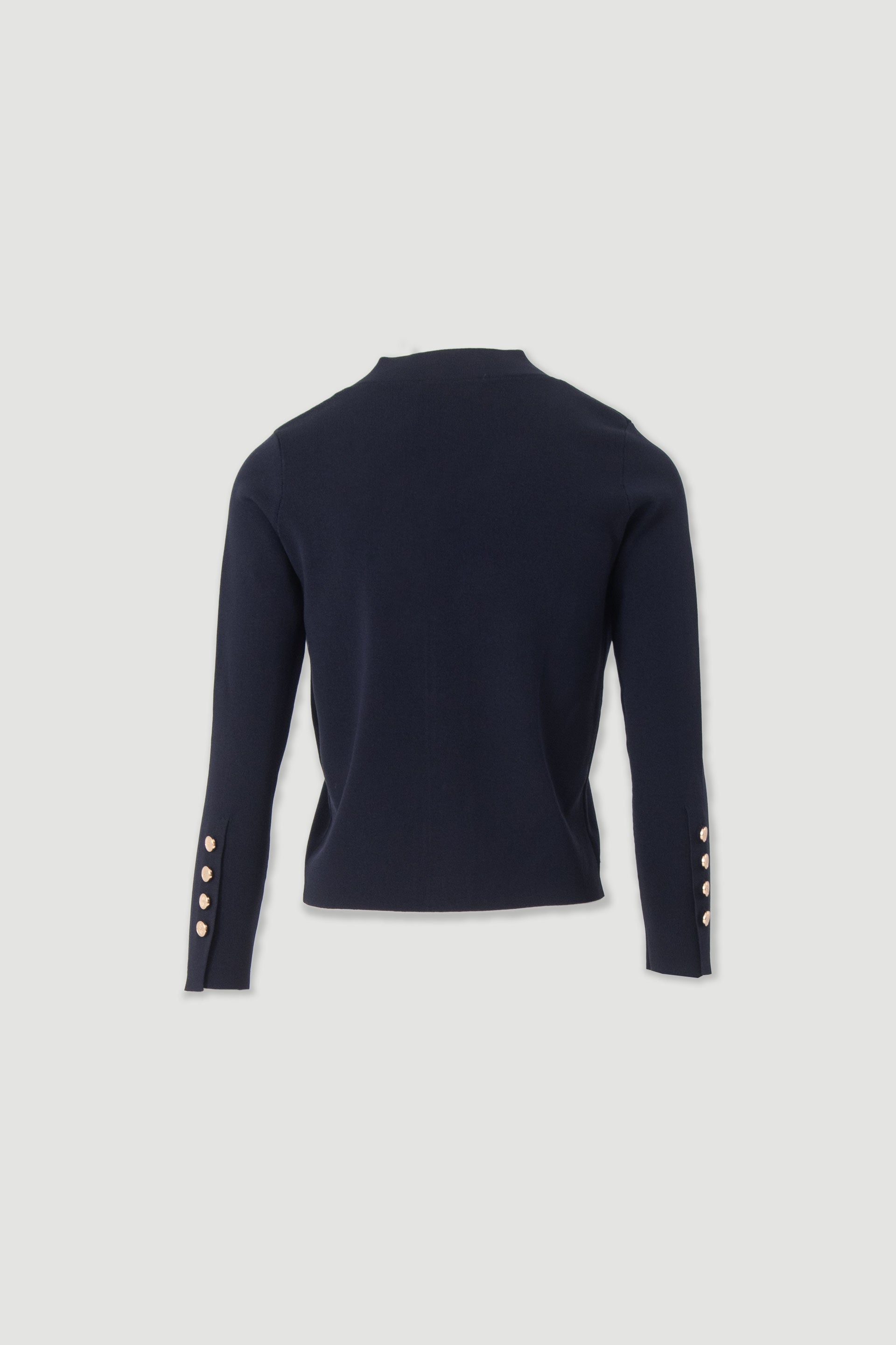 Casaco de malha macia da Ferrache, com decote em V e fecho frontal com botões dourados. Apresenta mangas compridas com punho caneladobotões de punho. Uma peça versátil e sofisticada, ideal para complementar coordenados casuais ou looks mais cuidados.