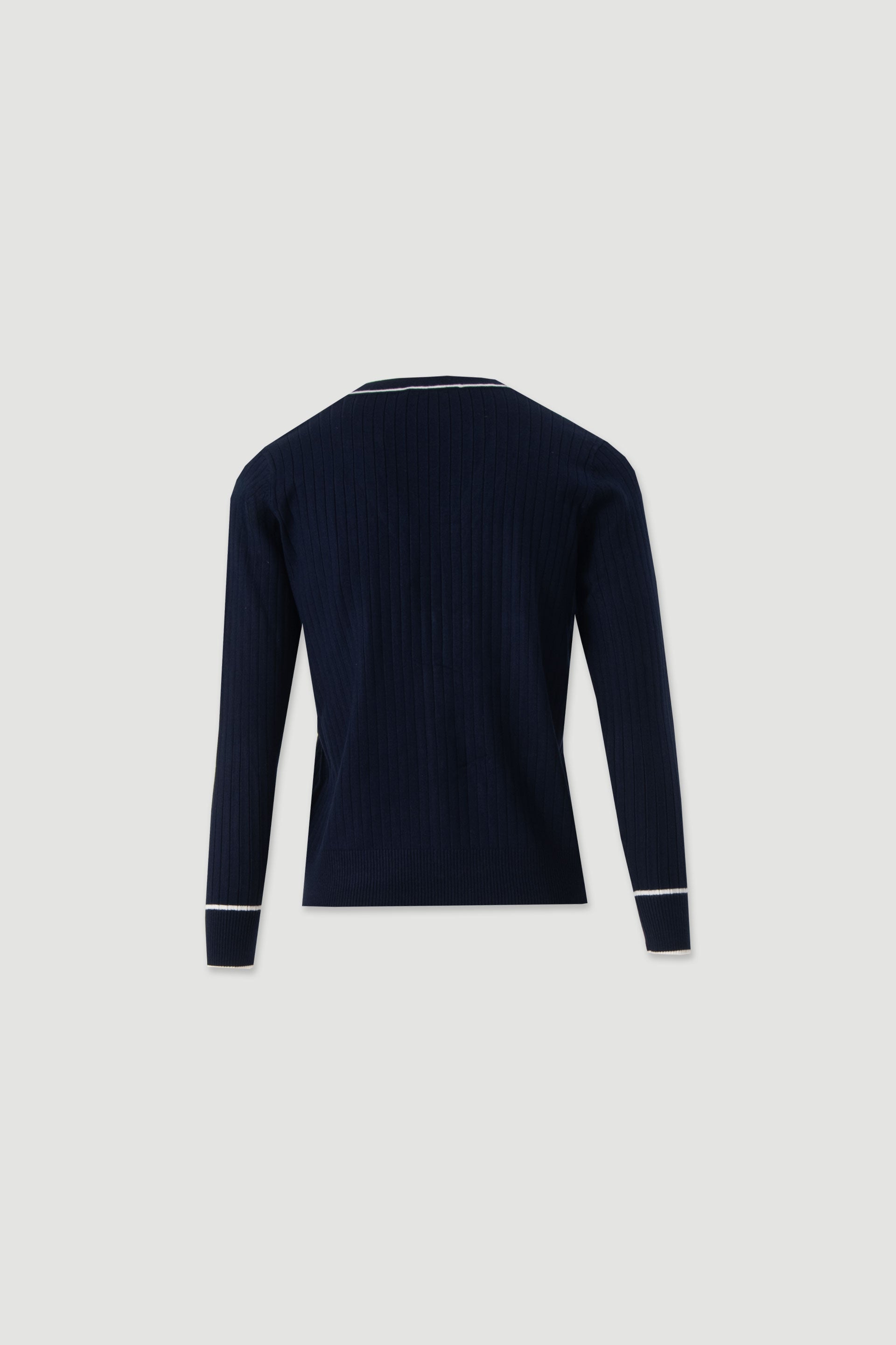 Casaco feminino Ferrache em malha canelada com decote em V, uma peça elegante e versátil que combina conforto e estilo intemporal. O tecido em malha proporciona um toque suave e um ajuste confortável para o uso diário.