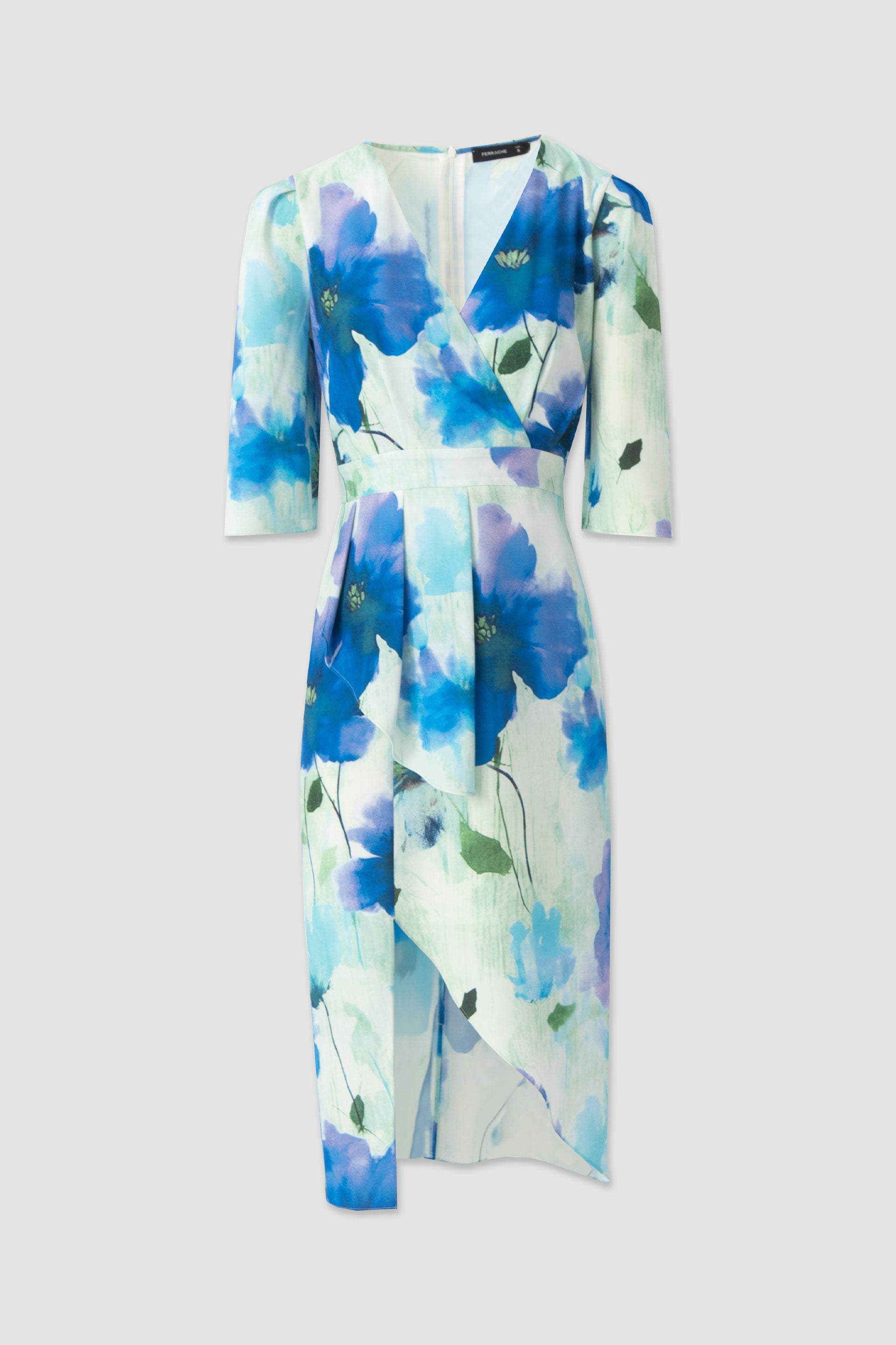 A sobreposição frontal assimétrica cria um efeito delicado e moderno, acrescentando movimento e um toque distinto ao design. O fecho de correr invisível nas costas garante um ajuste perfeito e um acabamento discreto e refinado.